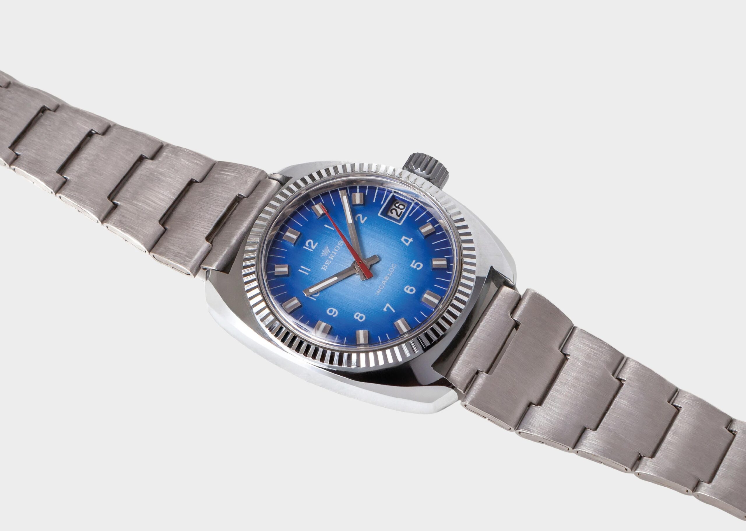 Oceano Berios Vintage Watch: orologio meccanico da uomo con cassa Tonneau in acciaio, bracciale in acciaio e quadrante azzurro profondo. Un segnatempo dal carattere forte e autentico.