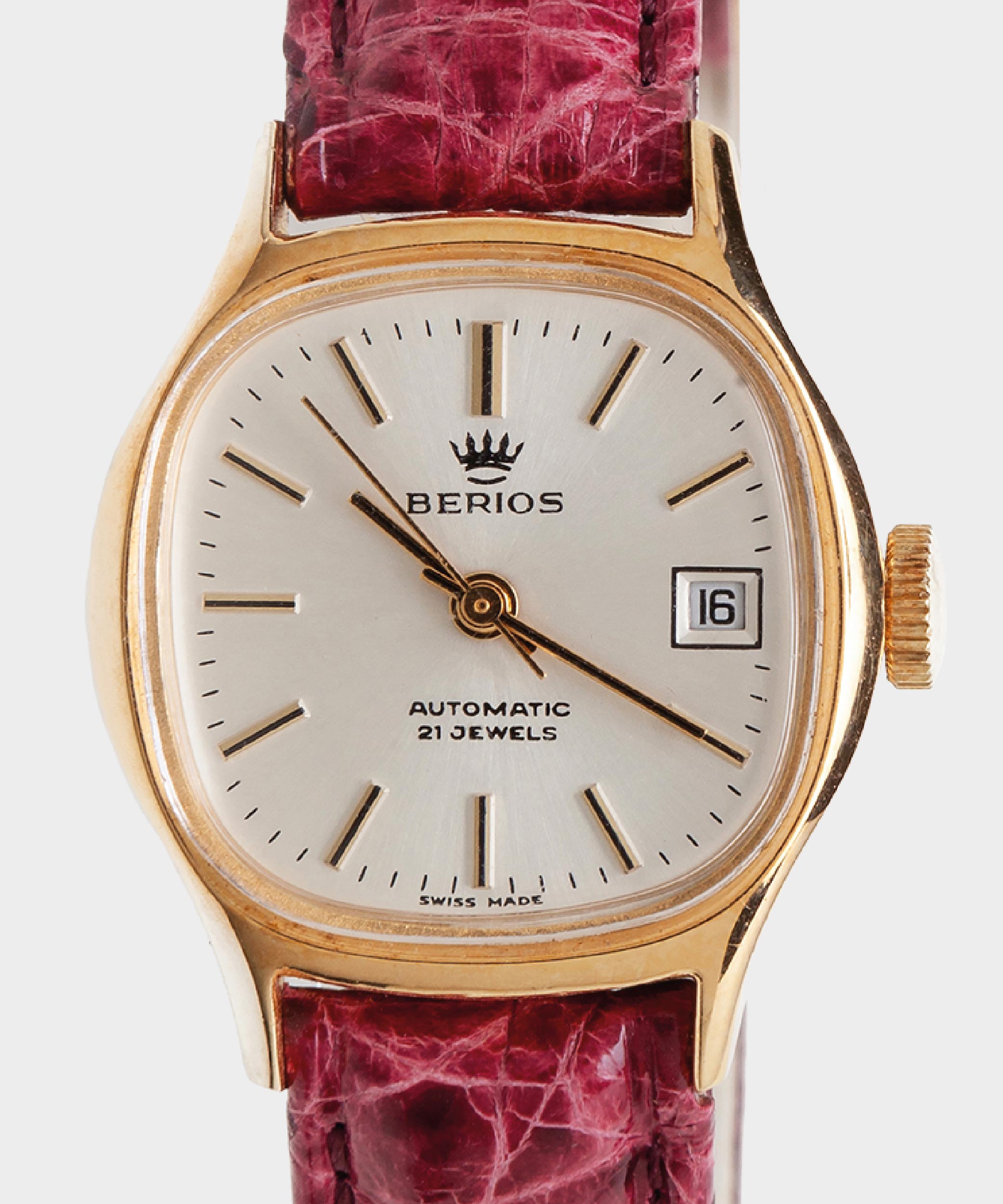 Queen Berios Vintage Watch è un orologio automatico da donna dal fascino elegante e retrò. Placcato in oro, con cassa 24×24 mm, quadrante bianco perla e cinturino rosso, è l’accessorio ideale per chi ama stile e raffinatezza senza tempo.
