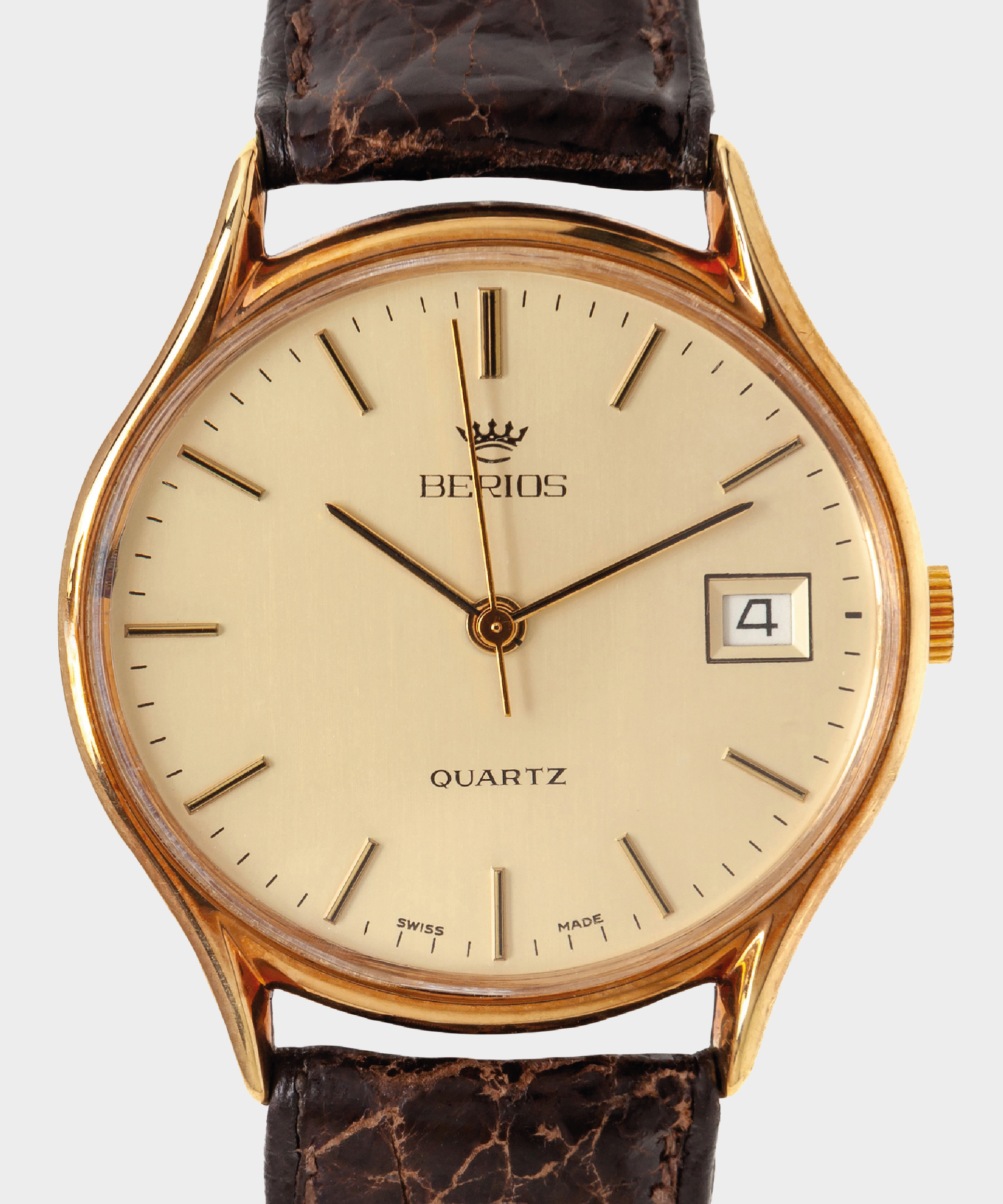 Questo Orologio Berios Vintage Watch unisce precisione e stile in un design raffinato. La cassa tonda in acciaio laminato oro da 34 mm valorizza il polso con eleganza, mentre il quadrante beige dona un tocco classico e sofisticato. Grazie al movimento al quarzo, questo orologio garantisce precisione e durata nel tempo. Un accessorio perfetto per l’uomo che ama distinguersi con gusto e semplicità.