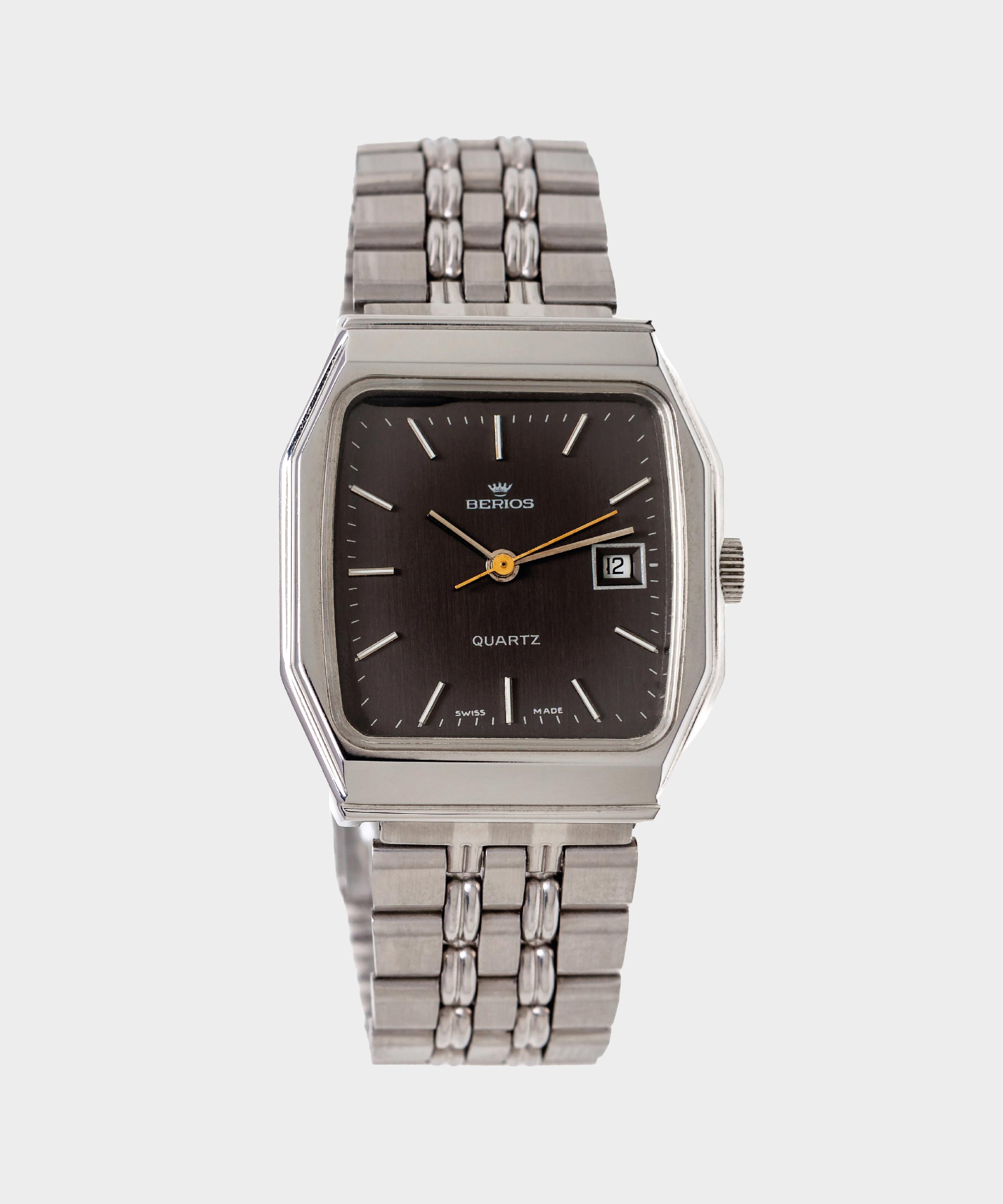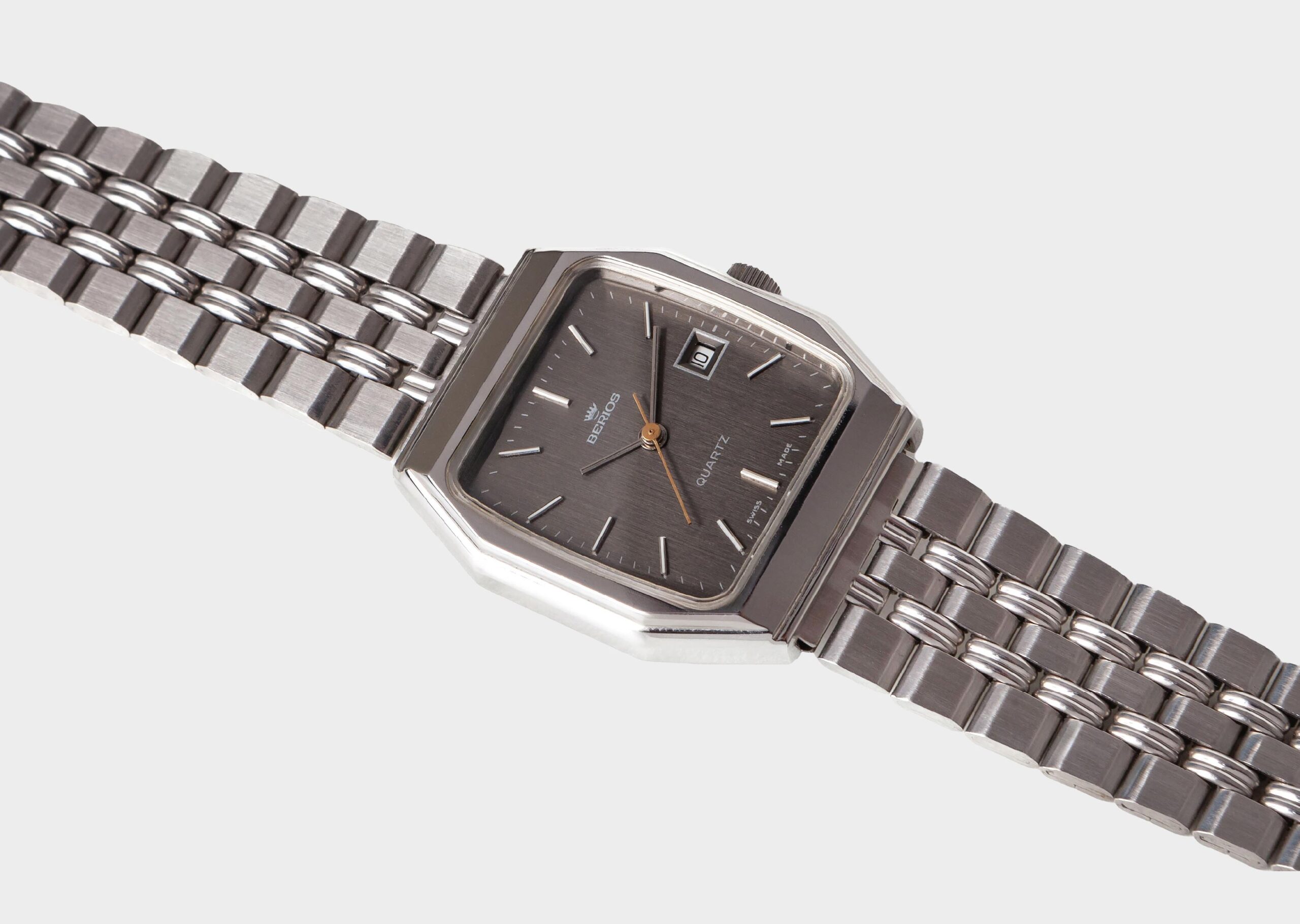 Simbolo Silver è un orologio Berios Vintage Watch da uomo, con meccanismo al quarzo dallo stile vintage ed elegante. La cassa ottagonale in acciaio da 34×30 mm e il quadrante in acciaio definiscono uno stile pulito e distintivo, ideale per chi cerca un segnatempo di carattere.